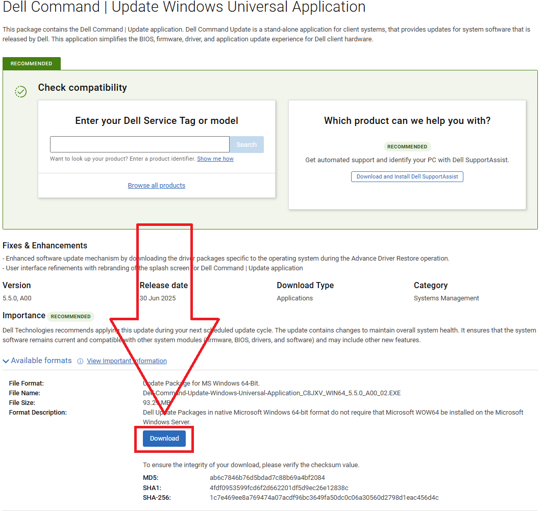 At the top there will be a large section "Recommended" asking for a Service Tag - skip this and scroll slightly down and click the blue “Download” button found underneath the file details. - When the file finishes downloading, double-click the downloaded file and follow the installer prompts: Next → Install → Finish. The installer may ask to restart the computer, allow it, if asked.