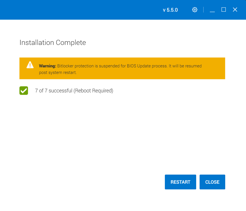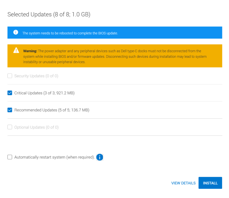 If the list includes a BIOS update or system firmware update, Dell Command | Update will show a notice or warning message.