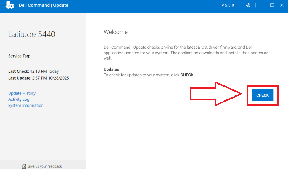 Open Dell Command Update (Windows → type Dell Command Update → press Enter).